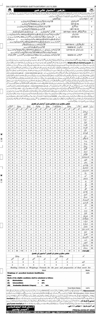ESTs, JETs, JATs, PETs, DMs, JWT, MQ Teaching Vacancies 2025 in Education Department Balochistan