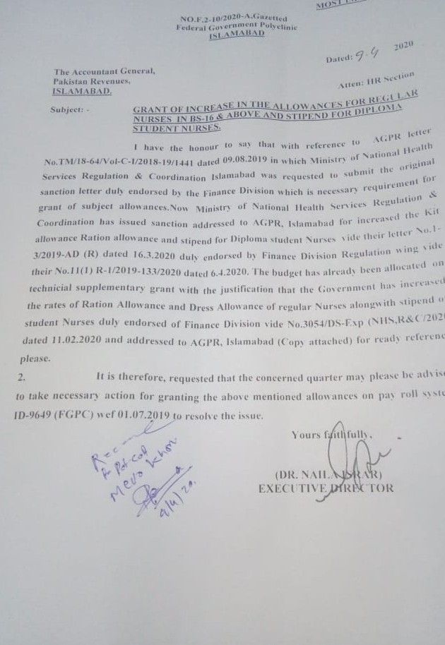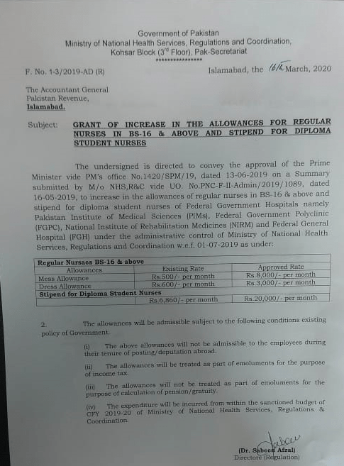 1 thought on “Increase in Dress Allowance and Other Allowances by Ministry of NHSR&C”
