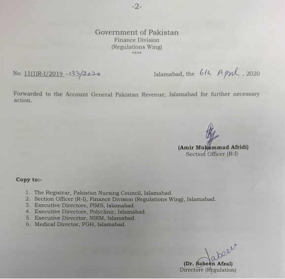Notification issued on 06-04-2020 by Federal Government Polyclinic Islamabad