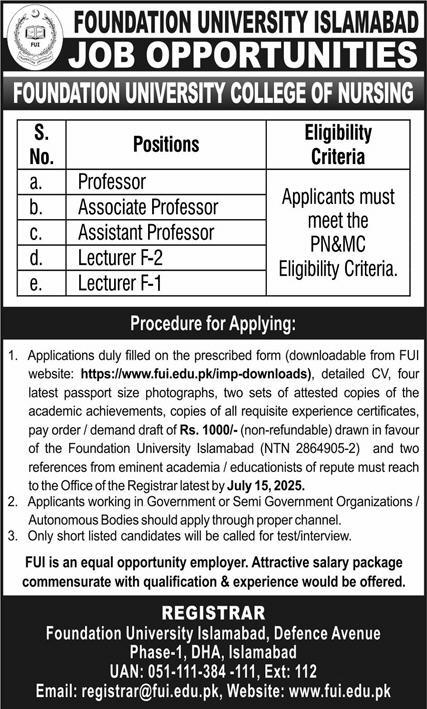Lords College Of Nursing Chakwal Jobs 2025 For Lecturers