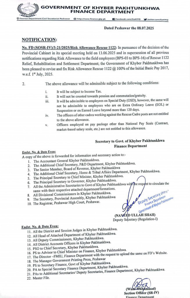 Notification for Revised Risk Allowance 2025 Rescue 1122 KPK July 23, 2025 by nabx1331@gmail.com Notification for Revised Risk Allowance 2025 Rescue 1122 KPK Notification for Revised Risk Allowance 2025 Rescue 1122 KPK See More: