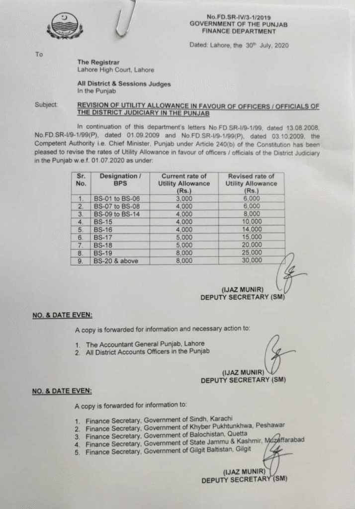 1 thought on “Notification of Revision Utility Allowance to District Judiciary Punjab”