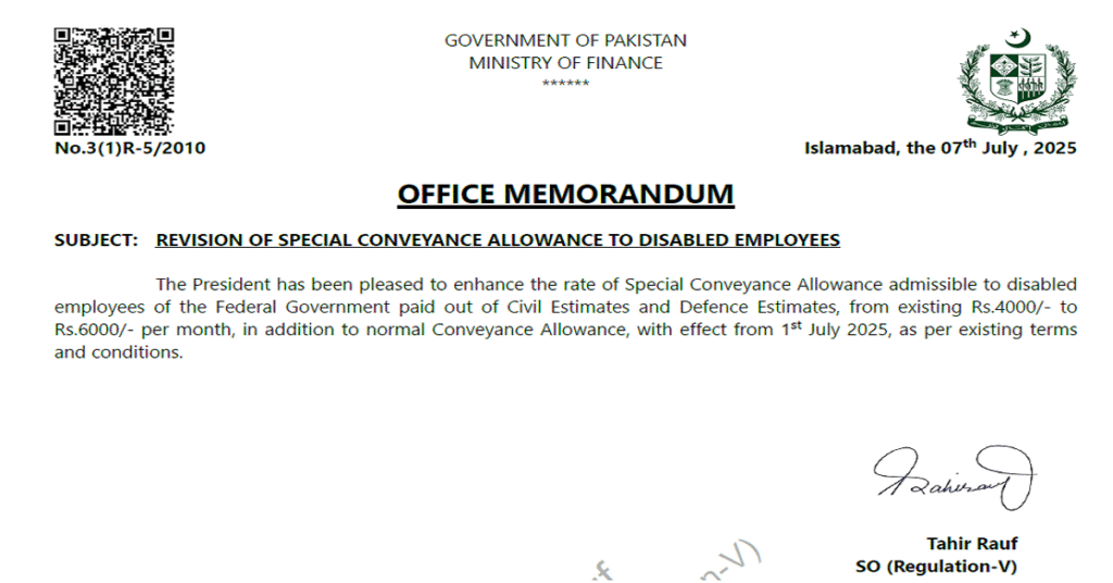 Notification Special Conveyance Allowance 2025 @ 6000/- Per Month (Federal) July 18, 2025 by nabx1331@gmail.com Notification Special Conveyance Allowance 2025 @ 6000/- Per Month (Federal) Notification Special Conveyance Allowance 2025 @ 6000/- Per Month (Federal) See More:
