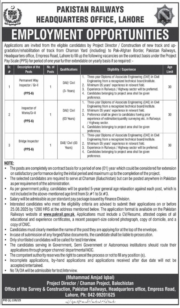 1 thought on “PPS-06 Vacancies in Pakistan Railways Headquarters 2025”