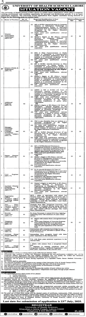 1 thought on “The Latest University of Health Sciences (UHS) Lahore Jobs July 2025”